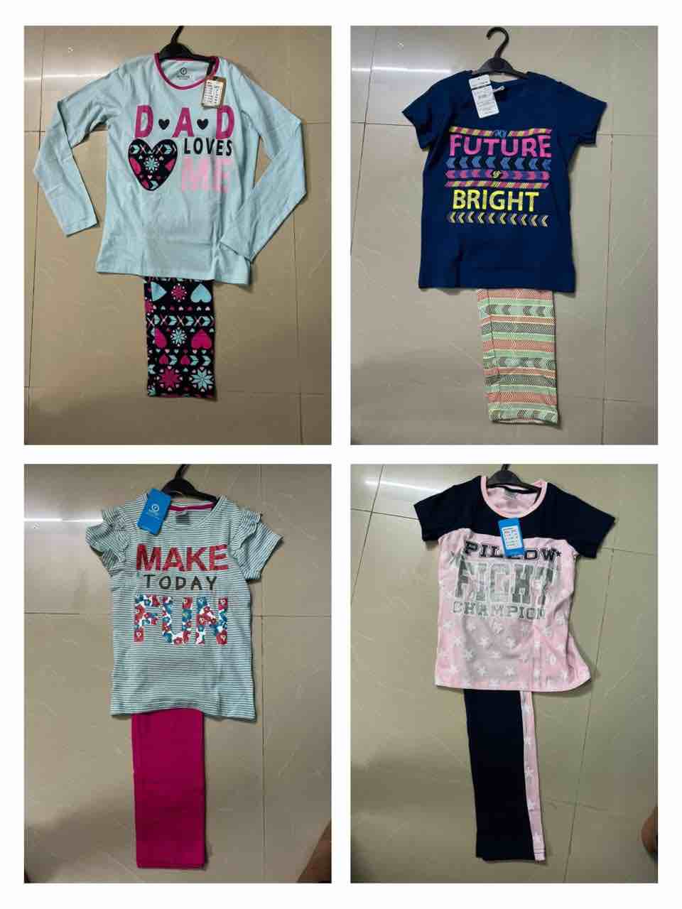 Style Description: Boys n Girls Pyjama Sets. Long sleeve n short sleeve printed t shirts. All round elastic waist full pant.