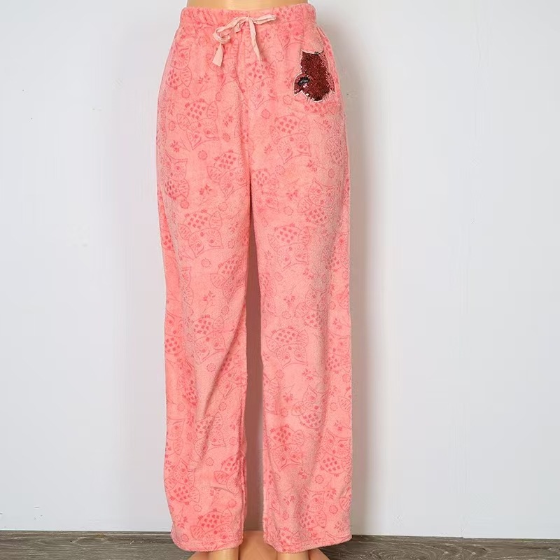 Ladies Printed Fleece Homewear Long Pants