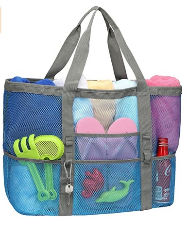 * Extra Large Storage Space: The 16.5"L x 15"H x 8.5"W mesh beach bag is big enough to carry 4-6 beach towels, water bottles, toys, sunblock, shoes, sunglasses and all you needs, fits many occasions such as beach trip, family days and grocery purchasing