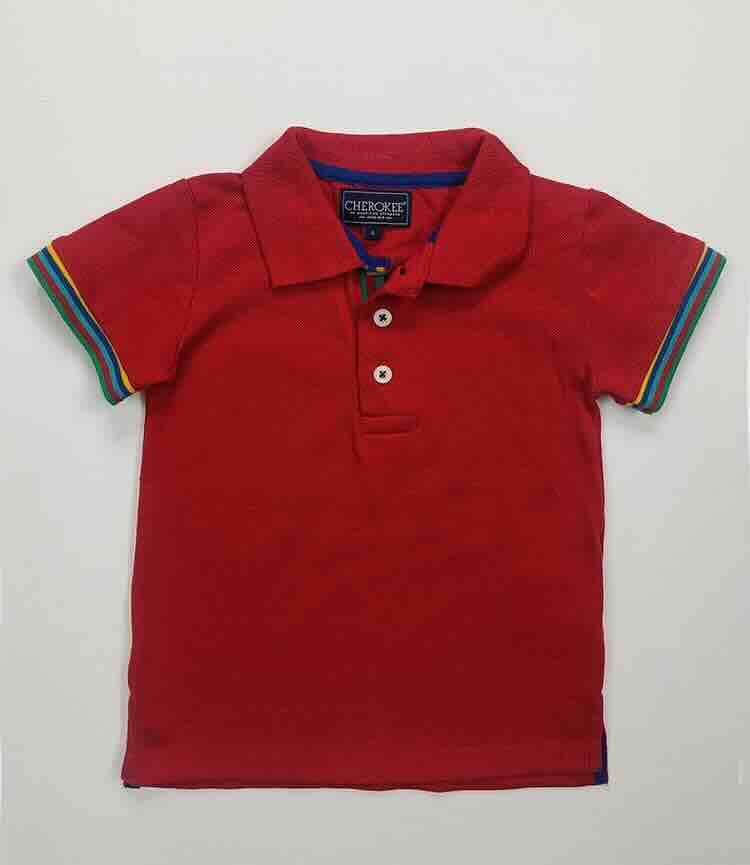 Style Description: Boys Collar T-Shirts. Short Sleeve. Flat Knit Rib Collar and Sleeve Cuff. Side Slit With Twill Tape at Bottom.