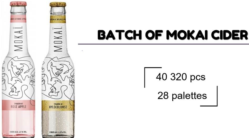 BATCH OF MOKAI CIDERTotal: 40 320 pcs. / 28 palletsPrice take all: 0.33 EUR pcs.EXW France