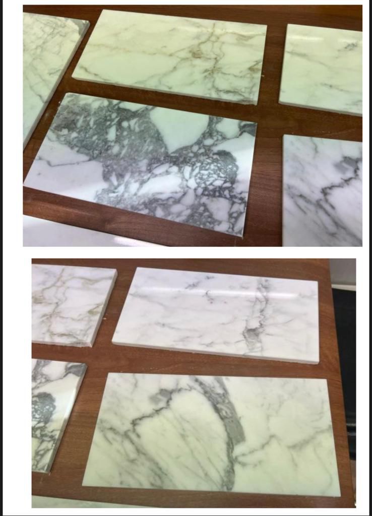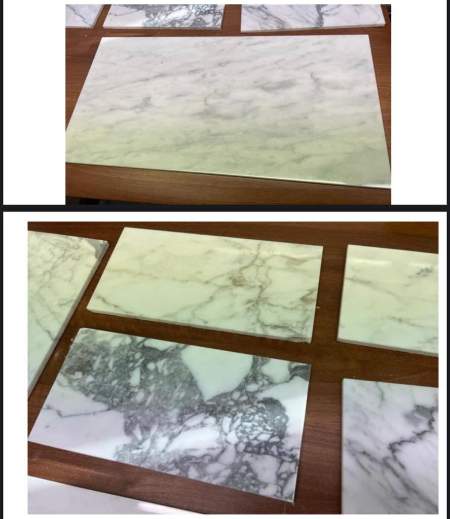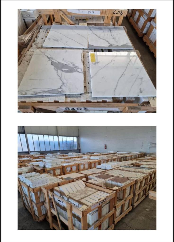 Selection of natural marble Made in Italy, mainly Calacatta and Carrara, high-quality material.