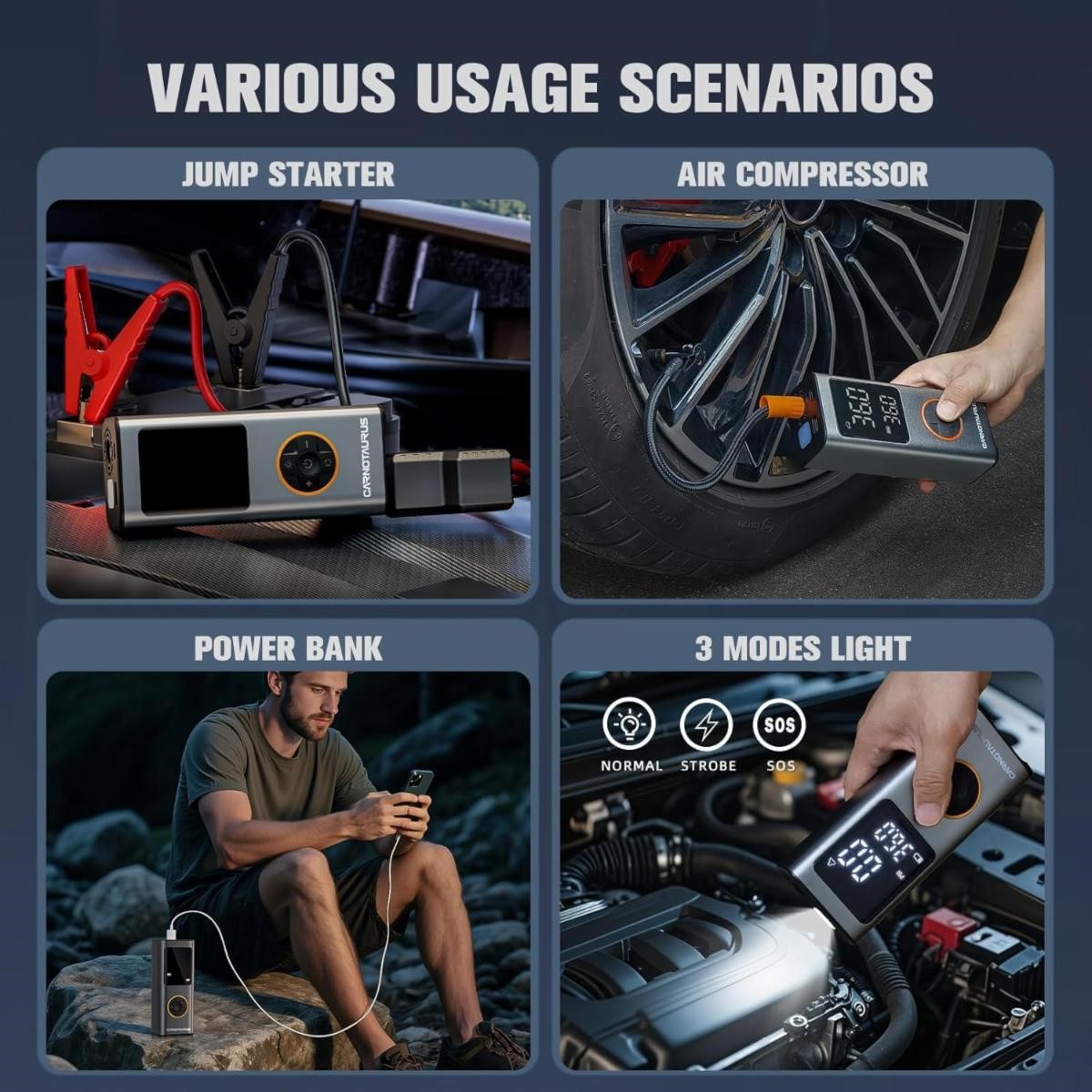 CARNOTAURUS Smart Car Jump Starter with Air Compressor and Power Bank