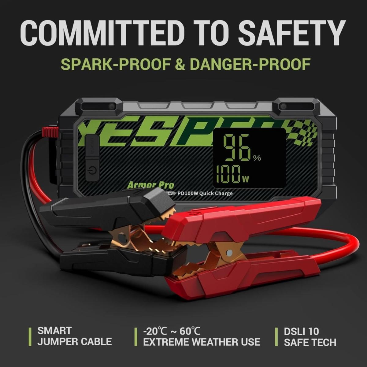12V Safe Car Jumper Box Portable with 3.2in LCD Display & PD100W