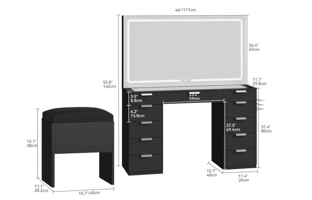 Vanity Table with LED-lit Mirror with Power OutletTotaL: 700 setsPrice take al: 78.50$ setEXW: LA, USA