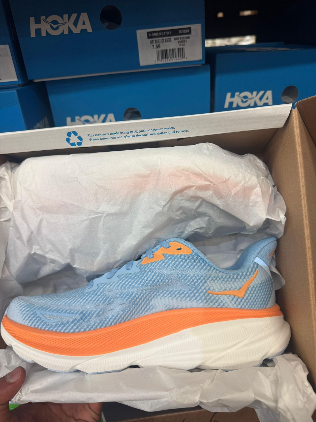 Hoka SneakersTotal: 3 000 pairs Sizes: 7.5 & 8.5 maybe some 9.5 but majority 7.5&8.5Retail: 234$ - 299$ pairPrice take all: 58.00$ pairEXW USA