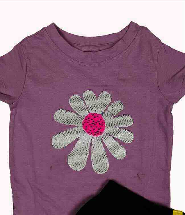 Style Description: Crew Neck | Placement Print, Sequins | Short Sleeve T-Shirt | Elastic Waist Pant | Printed