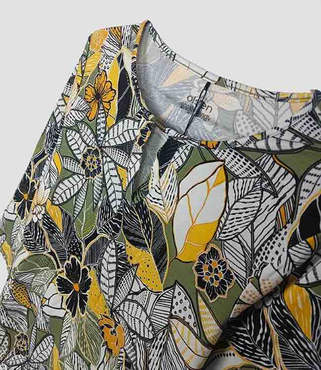 Style Description: Women's Printed Tops Assorted. 3/4 the Sleeve. Value Added Decorations.