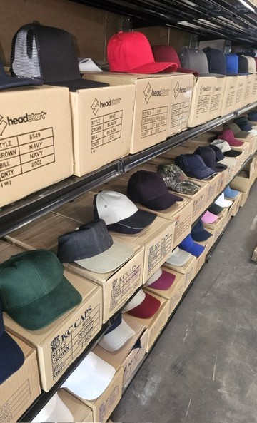 Large inventory of caps. Baseball style caps.