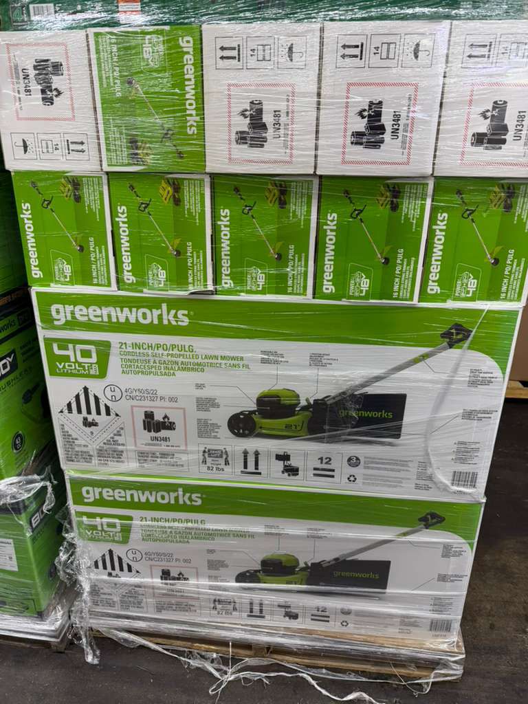 Green Works - Outdoor Tools2 TrailersTotal: 2 379 unitsRetail: 525 793.58$Price take all: 160 000$FOB: NC, USA